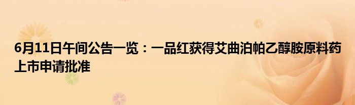 6月11日午间公告一览:一品红获得艾曲泊帕乙醇胺原料药上市申请批准