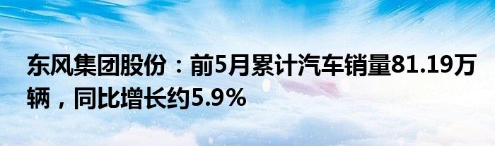 东风集团股份:前5月累计汽车销量81.19万辆,同比增长约5.9%