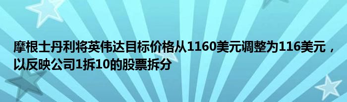 摩根士丹利将英伟达目标价格从1160美元调整为116美元,以反映公司1拆10的股票拆分