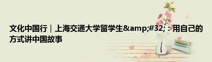 文化中国行|上海交通大学留学生 :用自己的方式讲中国故事