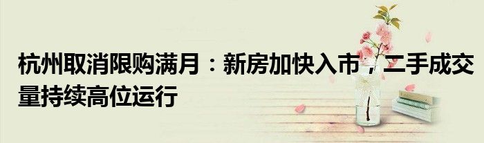 杭州取消限购满月:新房加快入市,二手成交量持续高位运行
