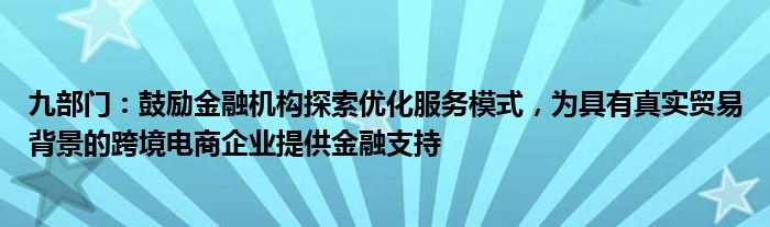 九部门:鼓励金融机构探索优化服务模式,为具有真实贸易背景的跨境电商企业提供金融支持