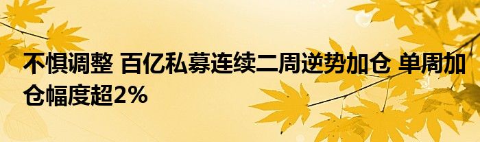 不惧调整 百亿私募连续二周逆势加仓 单周加仓幅度超2%