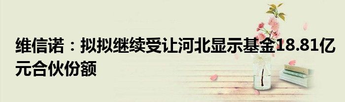 维信诺:拟拟继续受让河北显示基金18.81亿元合伙份额