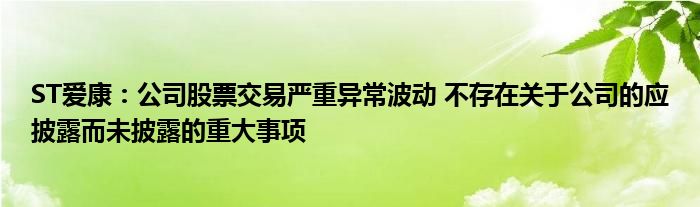 ST爱康:公司股票交易严重异常波动 不存在关于公司的应披露而未披露的重大事项