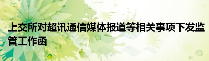 上交所对超讯通信媒体报道等相关事项下发监管工作函