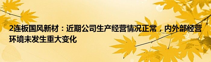 2连板国风新材:近期公司生产经营情况正常,内外部经营环境未发生重大变化
