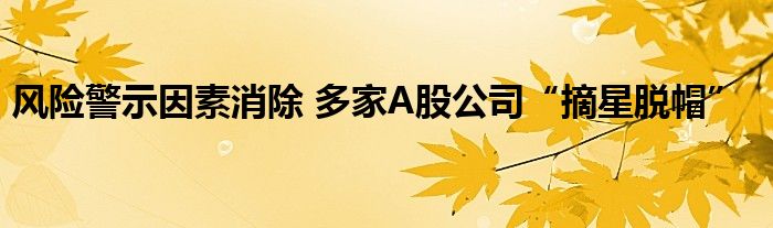 风险警示因素消除 多家A股公司“摘星脱帽”