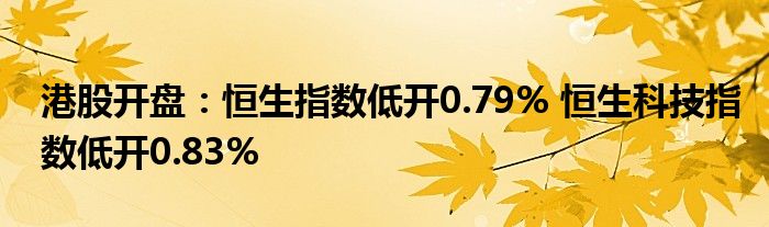 港股开盘:恒生指数低开0.79% 恒生科技指数低开0.83%
