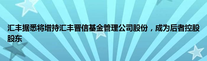 汇丰据悉将增持汇丰晋信基金管理公司股份,成为后者控股股东