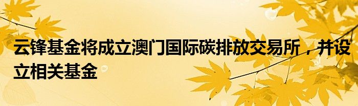 云锋基金将成立澳门国际碳排放交易所,并设立相关基金
