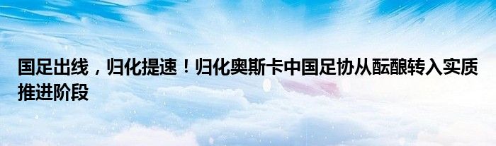 国足出线,归化提速!归化奥斯卡中国足协从酝酿转入实质推进阶段