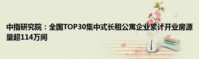 中指研究院:全国TOP30集中式长租公寓企业累计开业房源量超114万间