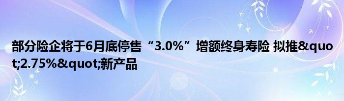 部分险企将于6月底停售“3.0%”增额终身寿险 拟推"2.75%"新产品