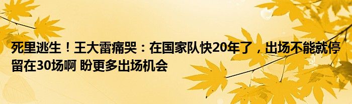 死里逃生!王大雷痛哭:在国家队快20年了,出场不能就停留在30场啊 盼更多出场机会