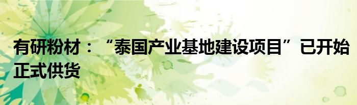 有研粉材:“泰国产业基地建设项目”已开始正式供货