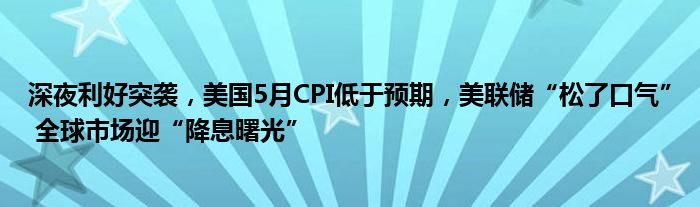 深夜利好突袭,美国5月CPI低于预期,美联储“松了口气” 全球市场迎“降息曙光”