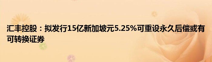 汇丰控股:拟发行15亿新加坡元5.25%可重设永久后偿或有可转换证券