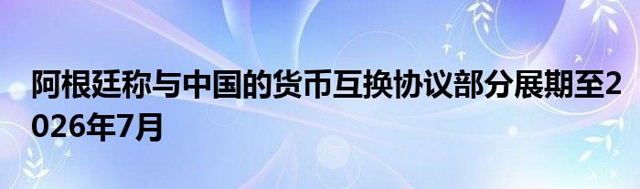 阿根廷称与中国的货币互换协议部分展期至2026年7月