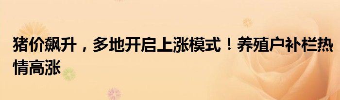 猪价飙升,多地开启上涨模式!养殖户补栏热情高涨
