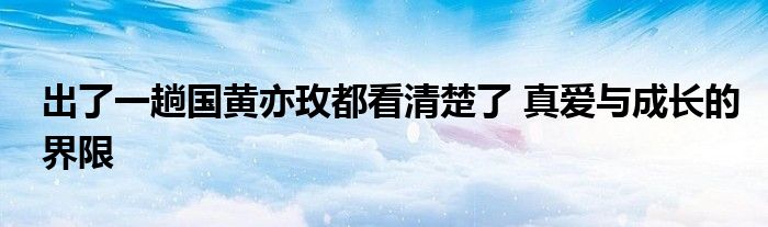 出了一趟国黄亦玫都看清楚了 真爱与成长的界限