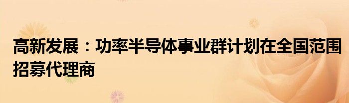 高新发展:功率半导体事业群计划在全国范围招募代理商