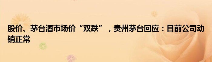 股价、茅台酒市场价“双跌”,贵州茅台回应:目前公司动销正常