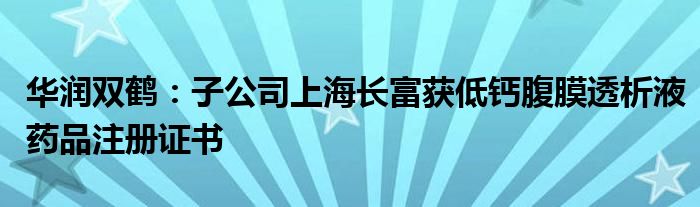 华润双鹤:子公司上海长富获低钙腹膜透析液药品注册证书