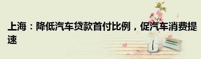 上海:降低汽车贷款首付比例,促汽车消费提速