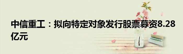 中信重工:拟向特定对象发行股票募资8.28亿元