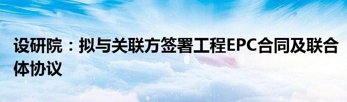 设研院:拟与关联方签署工程EPC合同及联合体协议