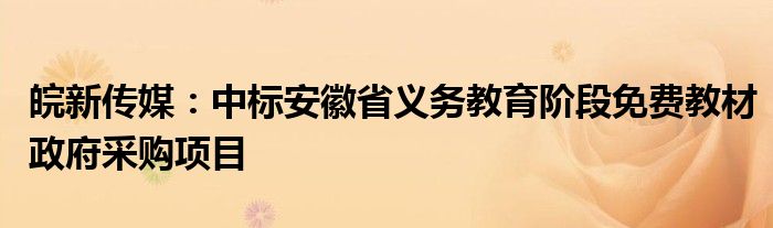 皖新传媒:中标安徽省义务教育阶段免费教材政府采购项目