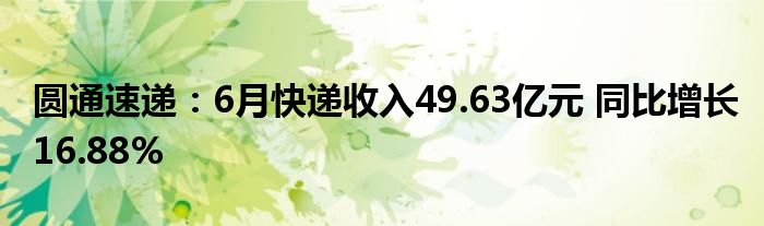 圆通速递:6月快递收入49.63亿元 同比增长16.88%