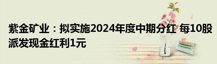 紫金矿业:拟实施2024年度中期分红 每10股派发现金红利1元