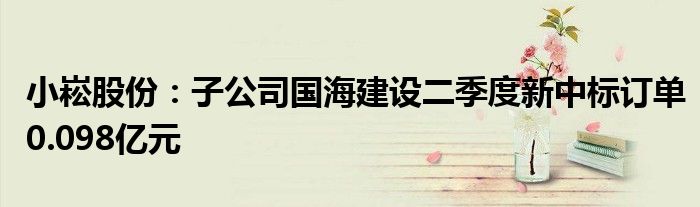 小崧股份:子公司国海建设二季度新中标订单0.098亿元