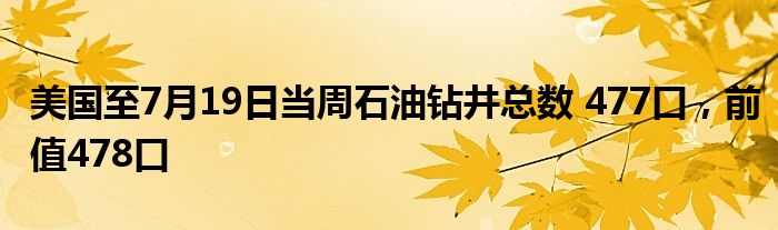 美国至7月19日当周石油钻井总数 477口,前值478口