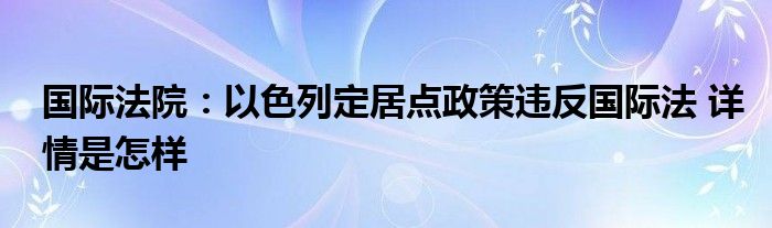【国际法院:以色列定居点政策违反国际法】大家可以一起来了解一下这是什么情况!