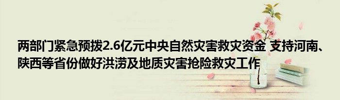 两部门紧急预拨2.6亿元中央自然灾害救灾资金 支持河南、陕西等省份做好洪涝及地质灾害抢险救灾工作
