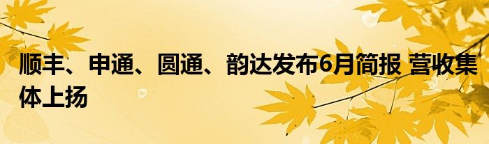 顺丰、申通、圆通、韵达发布6月简报 营收集体上扬