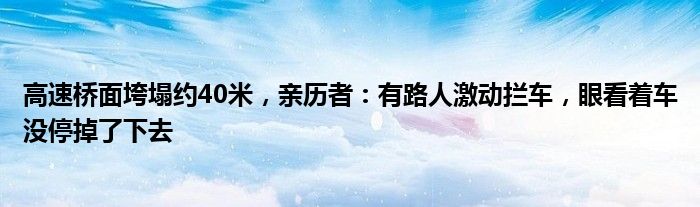 高速桥面垮塌约40米,亲历者:有路人激动拦车,眼看着车没停掉了下去