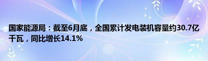 国家能源局:截至6月底,全国累计发电装机容量约30.7亿千瓦,同比增长14.1%