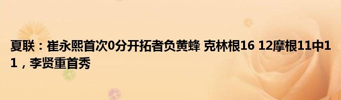 夏联:崔永熙首次0分开拓者负黄蜂 克林根16 12摩根11中11,李贤重首秀