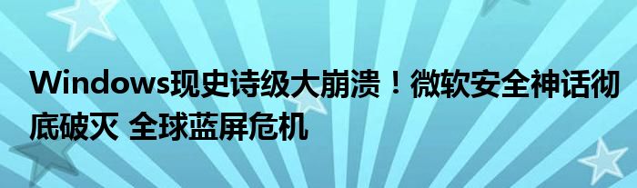 Windows现史诗级大崩溃!微软安全神话彻底破灭 全球蓝屏危机