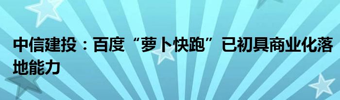 中信建投:百度“萝卜快跑”已初具商业化落地能力