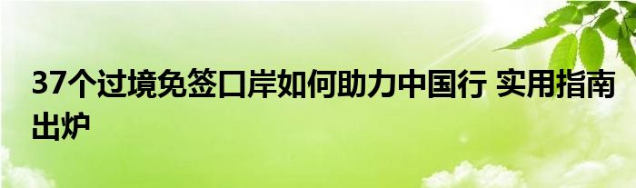 37个过境免签口岸如何助力中国行