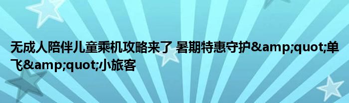 无成人陪伴儿童乘机攻略来了 暑期特惠守护"单飞"小旅客