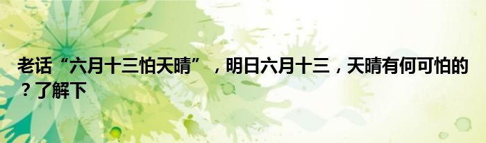 老话“六月十三怕天晴”,明日六月十三,天晴有何可怕的?了解下
