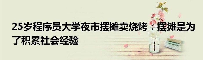 25岁程序员大学夜市摆摊卖烧烤:摆摊是为了积累社会经验