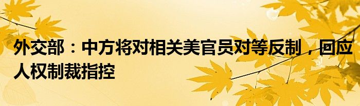 外交部:中方将对相关美官员对等反制,回应人权制裁指控