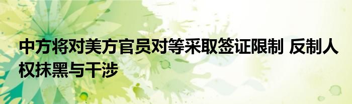 中方将对美方官员对等采取签证限制 反制人权抹黑与干涉